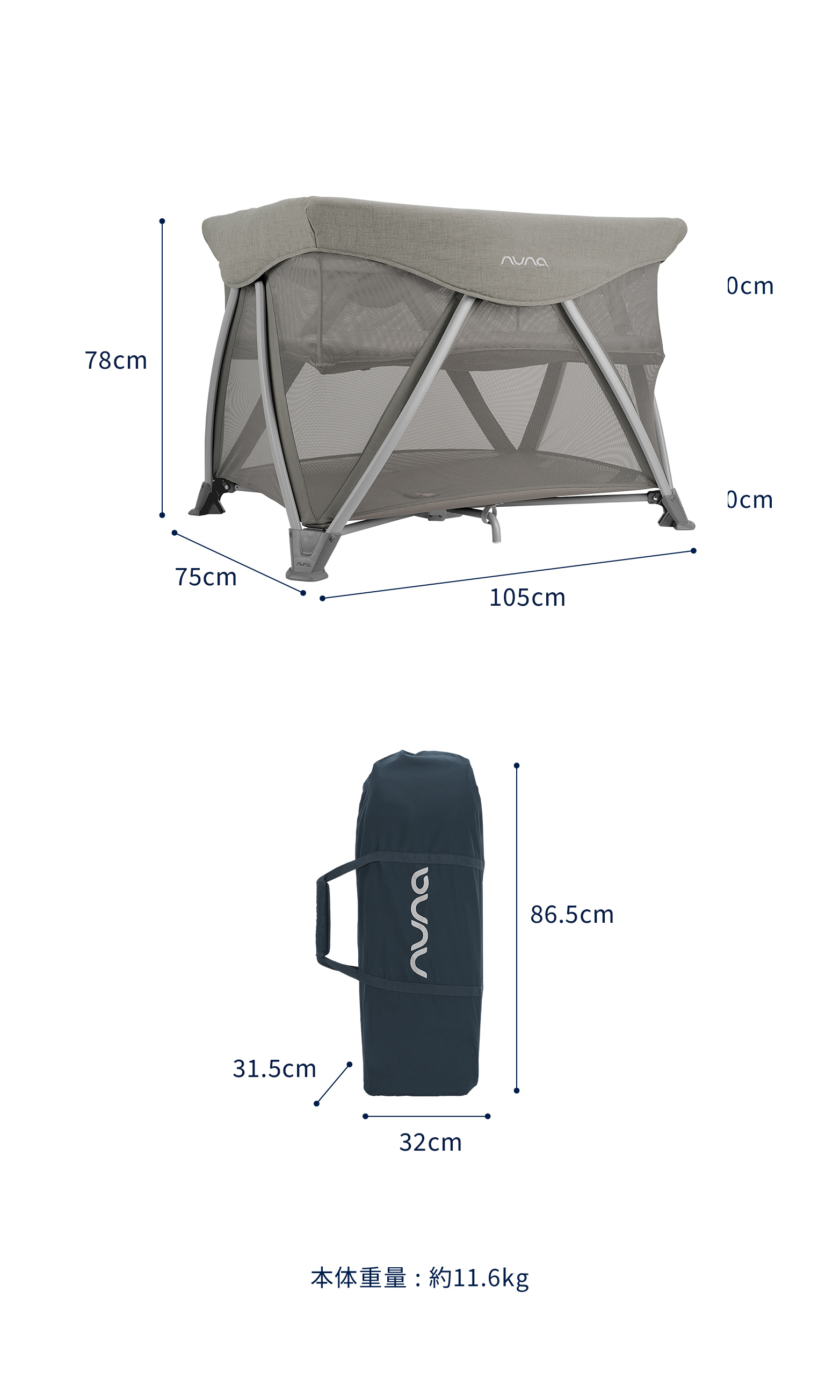 ・お子様がトラベルコットに登ることができるようになったら使用を中止してください