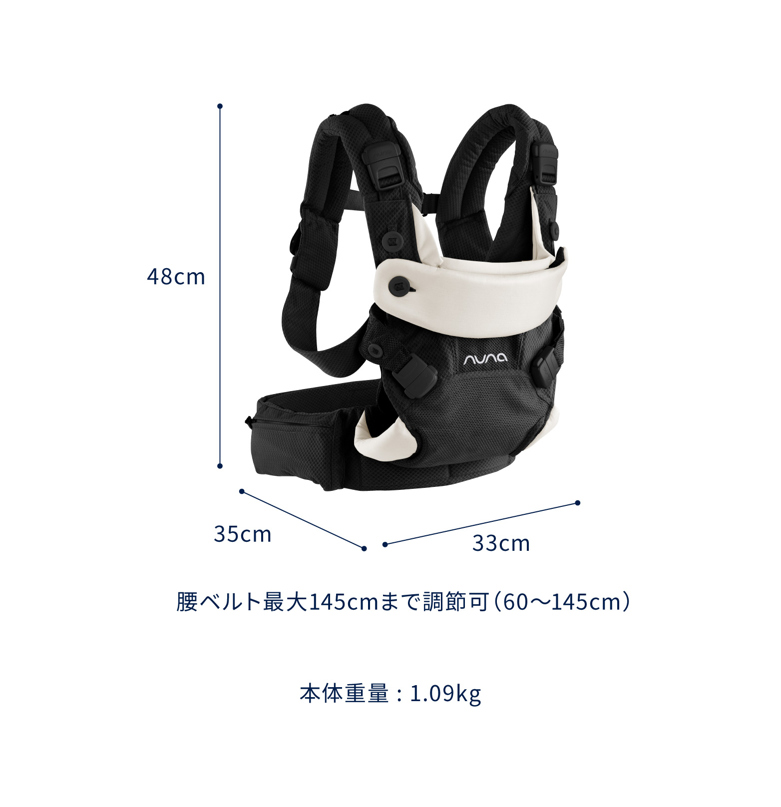 | 素材 | ■本体:ポリエステル100% ■中綿:ポリウレタン、ポリエチレン ■バックル等プラスチック類:POM+ Polyamide (Nylon) ■スタイ、肩ベルトカバー:オーガニックコットン |